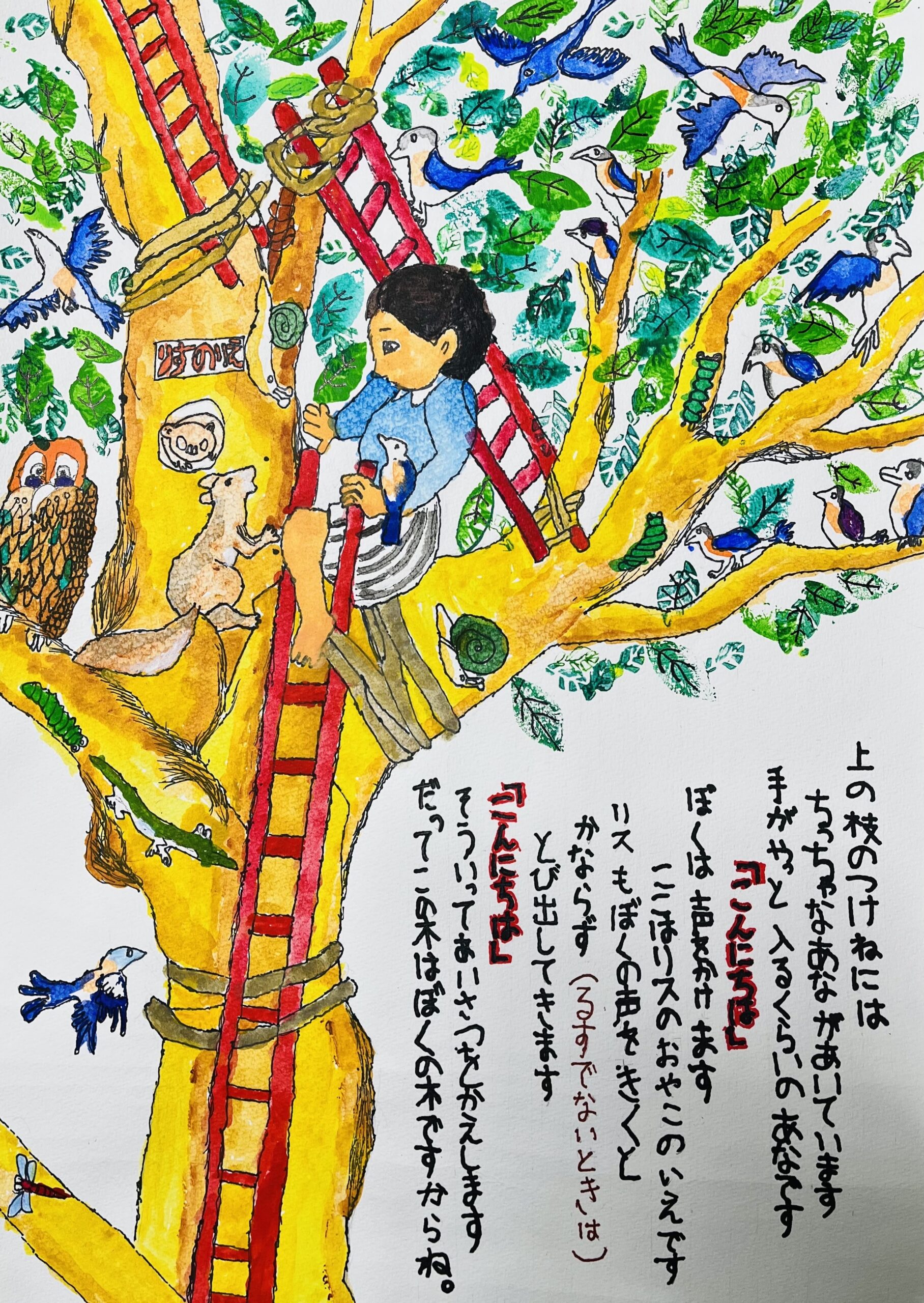 絵本『おおきなきがほしい』参照 四切り 水彩・ペン 40代男性