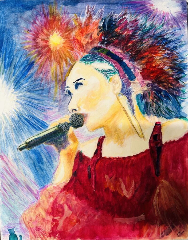 「熱唱」水彩 70代男性